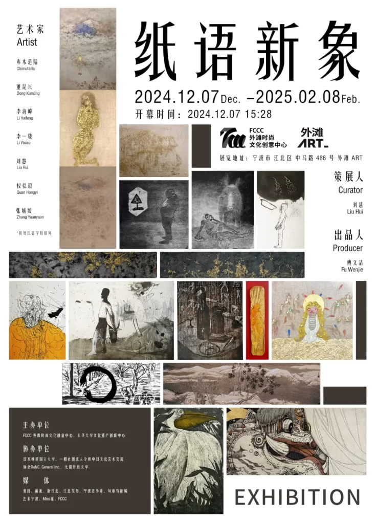 芸術の長い歴史の中で、「紙」という創作の媒体は、常に人類文化の深い底流を担ってきました。東アジアの宣紙から西洋の水彩紙に至るまで、紙上の芸術は技法の実験場であるだけでなく、思想や魂の映し鏡でもあります。本展は、中国と日本から集まった7人のアーティストによって、木版画、銅版画、泥金画、岩彩画、映像、そして中国画が展示され、東洋の芸術言語の魅力と古今の芸術形式の対話を示しています。